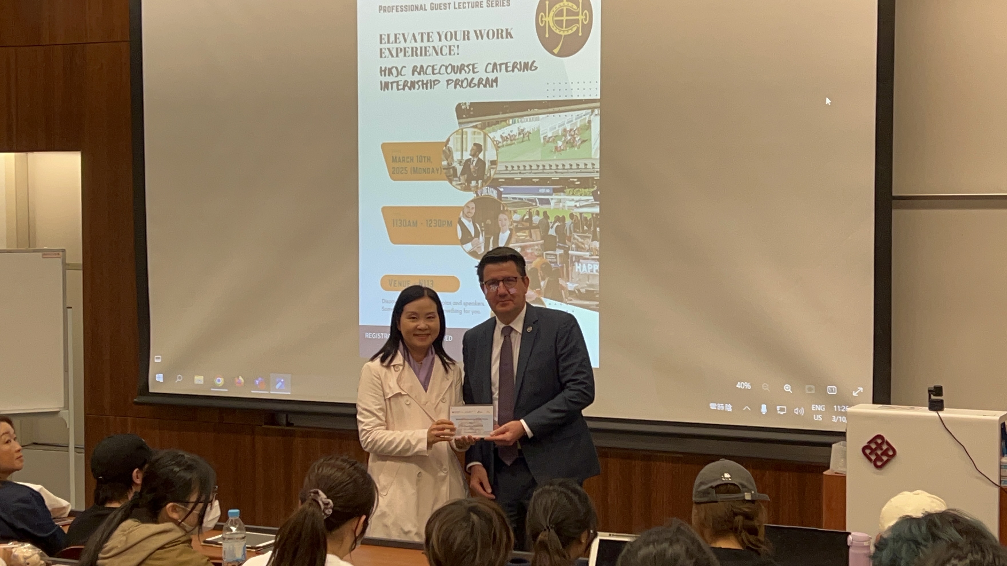 On 10 March 2025, students from the Division of Business and Hospitality Management of PolyU CPCE had the opportunity to attend an enlightening guest talk hosted by The Hong Kong Jockey Club (HKJC). The event featured Mr Yves Thoma, General Manager of Racecourse Operations, and his team, who introduced the HKJC Racecourse Catering Internship Programme. The session provided invaluable insights into racecourse catering operations and showcased potential career paths within the sector. The students also engaged in games designed to reinforce key concepts, making the experience both informative and enjoyable.