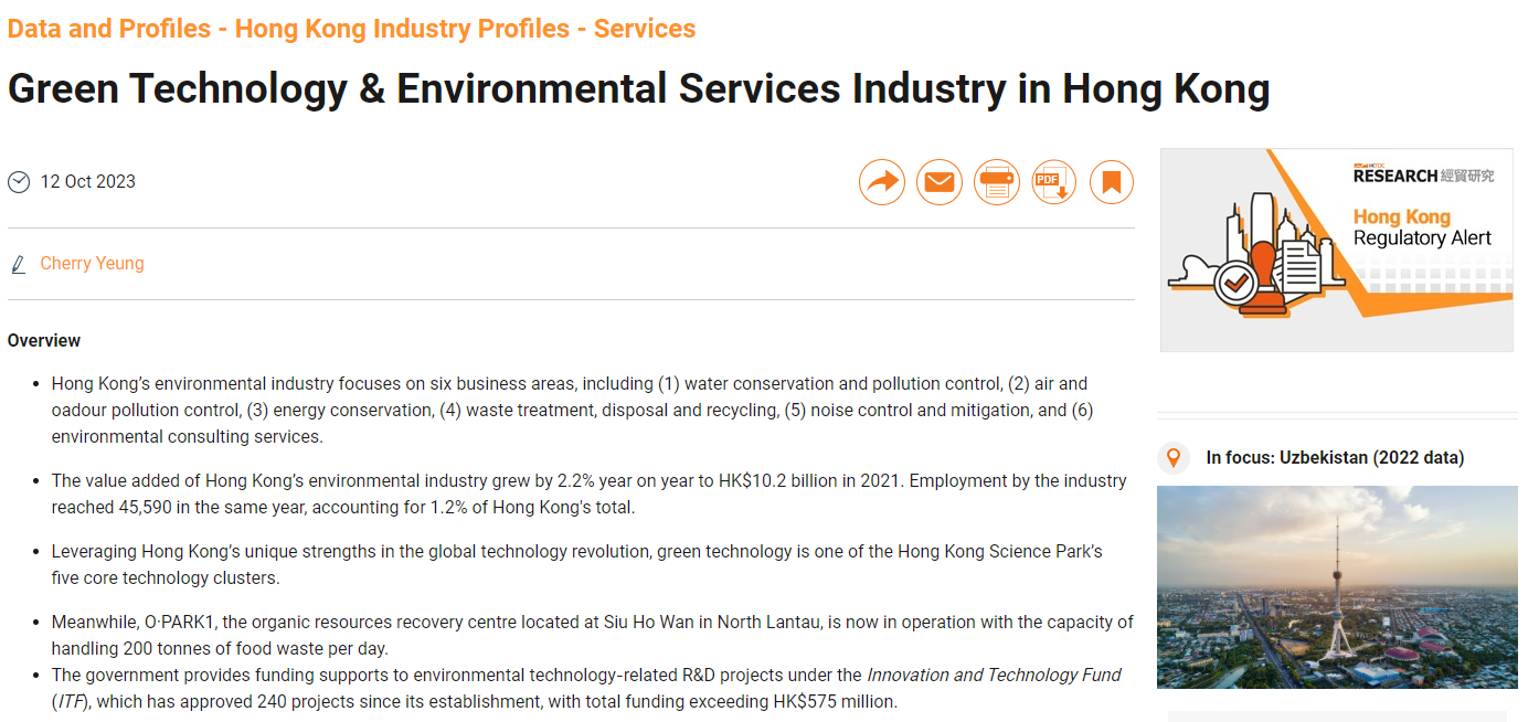 Green Technology and Environmental Services Industry in Hong Kong