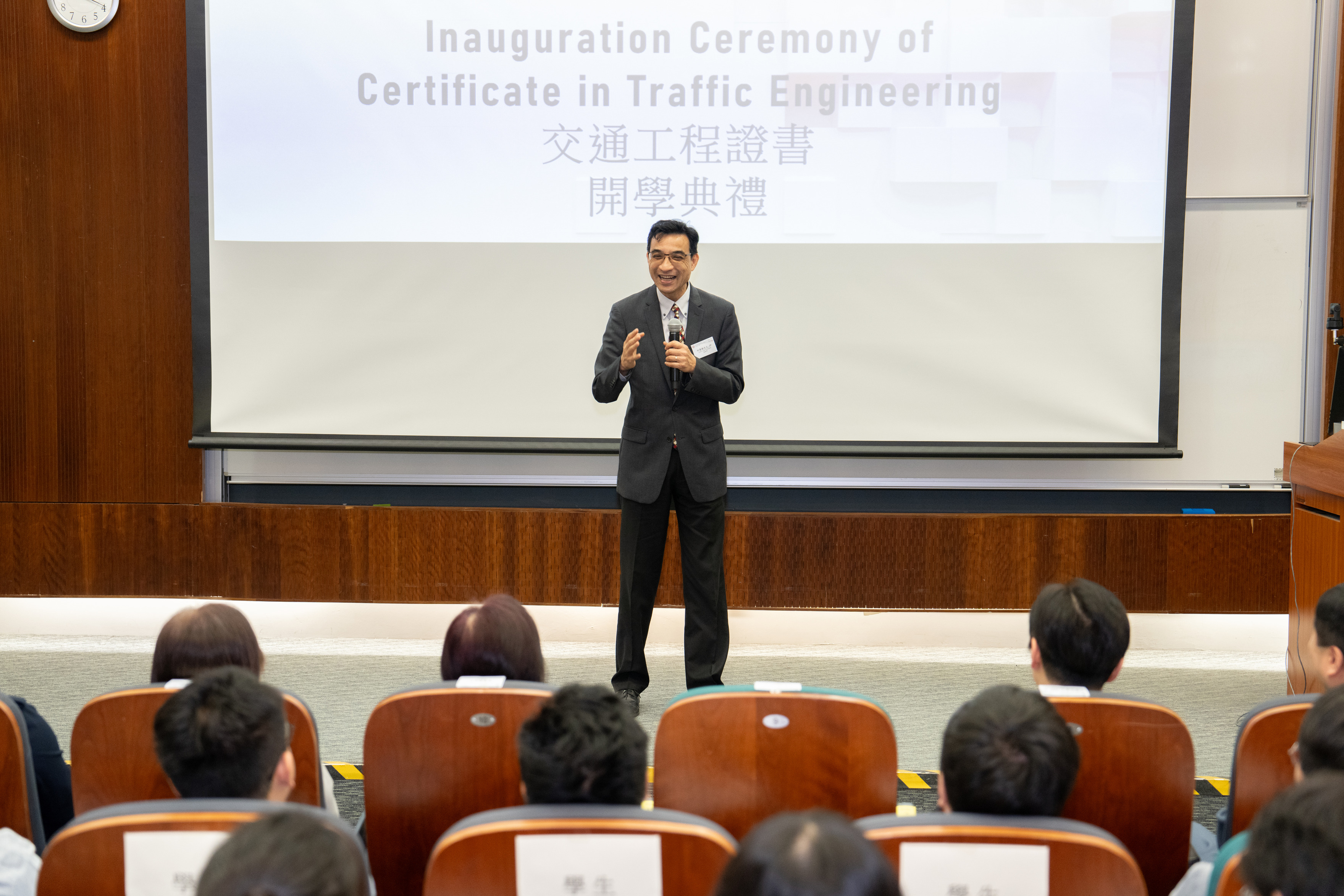 PolyU CPCE副院长(信息及发展)及PolyU SPEED院长陈继宇博士,MH,太平绅士于典礼中致欢迎辞,感谢运输署对学院的信任与支持。 他表示,首届课程圆满完成后,学院有幸再次承办,将秉持资源善用与优质教育的宗旨,为学员提供理想的学习环境。 他期望新一届学员能充实掌握交通工程的实用知识,在未来工作岗位上学以致用。