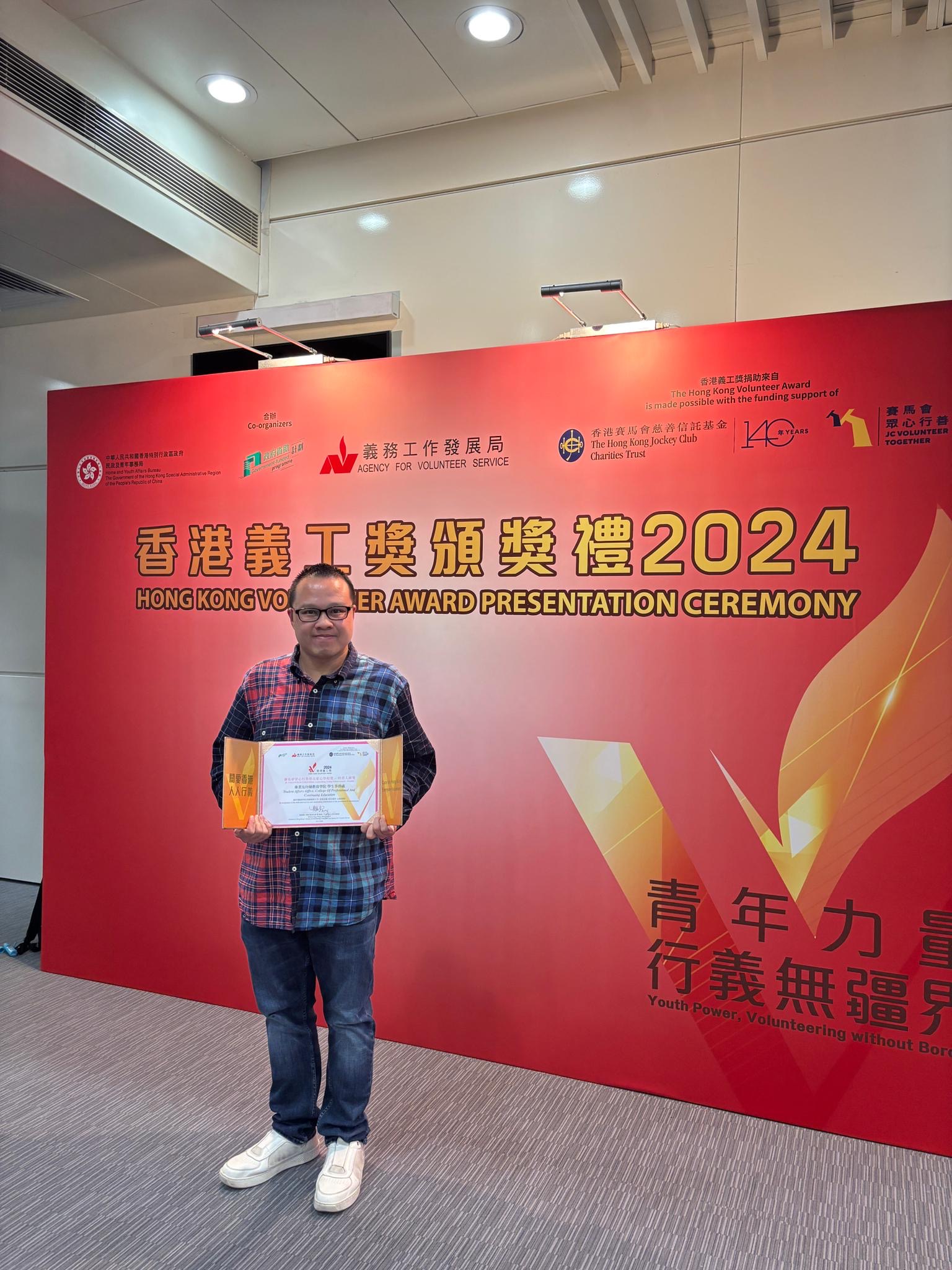 颁奖典礼于2024年12月10日假伊利沙伯体育馆举行。 PolyU CPCE学生事务总监刘锐业博士代表学院上台领奖。